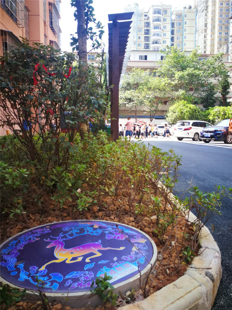 都匀市南华新村是黔南州旧城小区升级改造的示范小区,9月,乐鱼官网手机网页版-乐鱼(中国) 将艺术井盖嵌入都匀市南华新村小区绿化带,提升小区的艺术品位,使之成为小区一道靓丽的风景线。