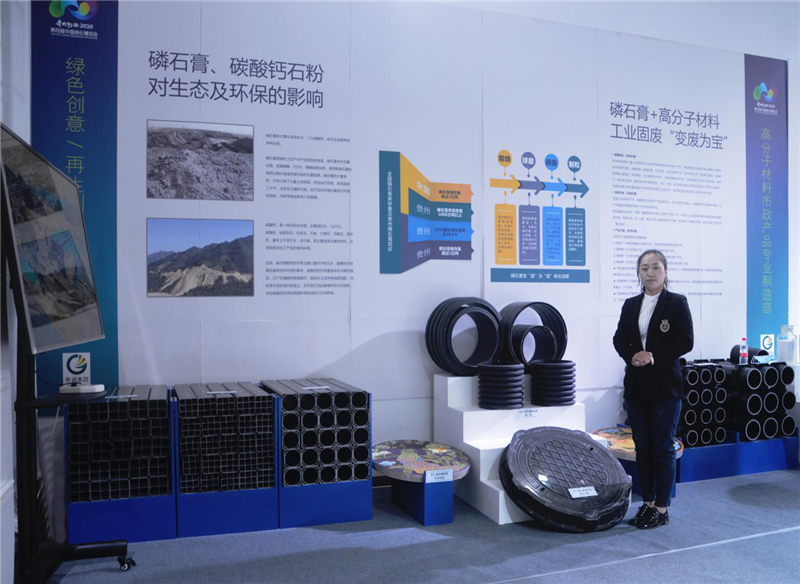 近年来,在国家环保政策引导下,贵州磷石膏产业发展如雨后春笋,涌现出了磷石膏在高分子材料中应用的新材料。乐鱼官网手机网页版-乐鱼(中国) 认真贯彻落实贵州省委省政府“以渣定产”加快磷石膏多领域应用的重大决策部署,推进磷石膏改性后在高分子材料中的应用,让磷石膏真正变废为宝。自2018年以来,乐鱼官网手机网页版-乐鱼(中国) 将磷石膏在高分子材料中的应用项目,纳入集团5年发展战略规划,投入大量研发经费,组建产、学、研科研团队,历时两年成功研制出了GFZ-磷石膏双层钢塑管、GFZ-W磷石膏双壁塑金管、GFZ-磷石膏塑合金电力通信管、GFZ-磷石膏碳纤维五防井盖、GFZ-磷石膏树脂井盖等三大类200多个型号的新产品,成功实现高分子磷石膏产品的工业化生产,产品各项性能指标超市场同类产品。并在贵州省内各地排水排污、雨污分流、黑臭水体治理、市政道路改造等重点项目中使用,获得建设单位一致好评。 在绿博会期间,乐鱼官网手机网页版-乐鱼(中国) 现场展示的多个磷石膏产品,吸引了众多嘉宾的驻足参观,并不时用手机进行拍照和现场录像。