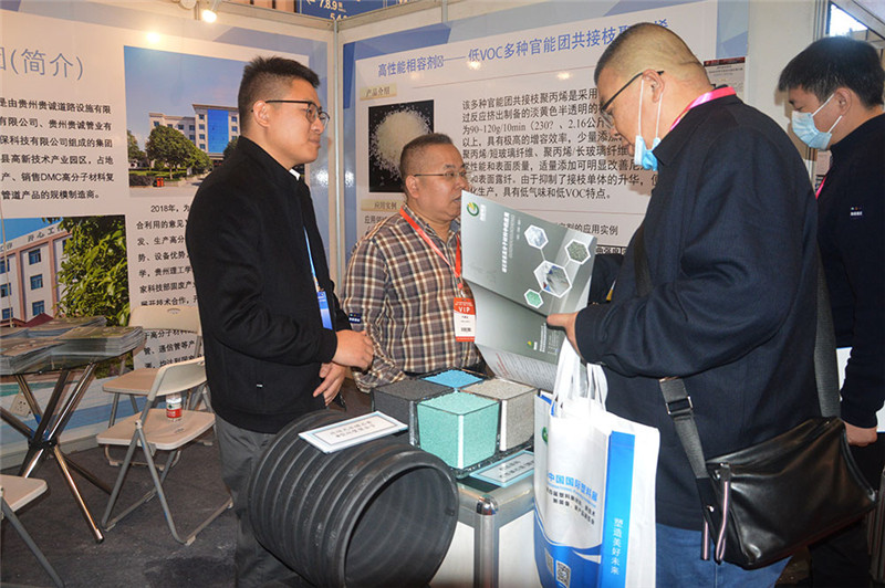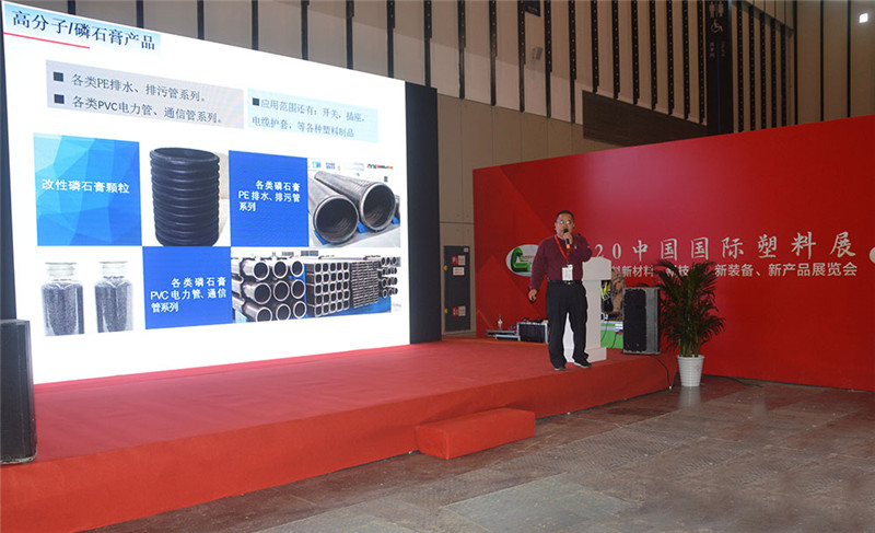 2020中国国际塑料展暨四届塑料新科技、新技术、新装备、新产品展览会于2020年11月3日—5日在江苏省南京市国际博览中心举行,乐鱼官网手机网页版-乐鱼(中国) 作为贵州大学产学研合作基地,携手贵州大学共同参展。在此次展会上,乐鱼官网手机网页版-乐鱼(中国) 向各大参展的领导、协会、企业展示了改性磷石膏粉料及改性磷石膏颗粒料,同时也展示了乐鱼官网手机网页版-乐鱼(中国) 用改性磷石膏原材料自产的管材产品。改性磷石膏原材料作为一种新的工业填充料,其韧性、硬性及市场价值受到了许多参展原料厂商的关注及兴趣。