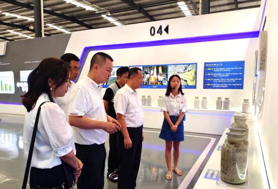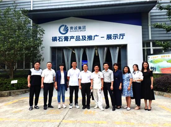 2022年8月14日中国塑料加工工业协会理事长王占杰一行到乐鱼官网手机网页版-乐鱼(中国) 龙里厂区参观调研磷石膏产品的生产情况和市场运用情况。乐鱼官网手机网页版-乐鱼(中国) 董事长赵建波,副总裁尤潇悦,贵诚环保公司副总刘晓慧全程陪同。