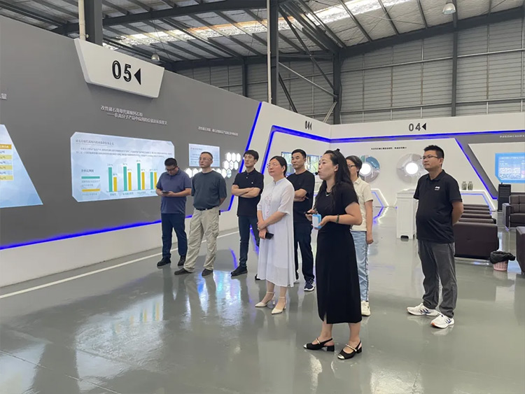王教授一行人首先来到企业展厅进行实地参观,详细了解了贵诚发展历史、磷石膏产业化应用发展现状以及贵诚旗下磷石膏产品分类等情况。